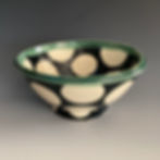 All of my pottery is wheel thrown from porcelain. Much of it has slip trailed designs which are slightly raised from the surface. Another textural element I play with is carving. Occasionally I alter the rims so not everything is round. Everything is handmade by me, and many of the pieces are one of a kind. If you are interested in ordering sets of dishes please contact me.